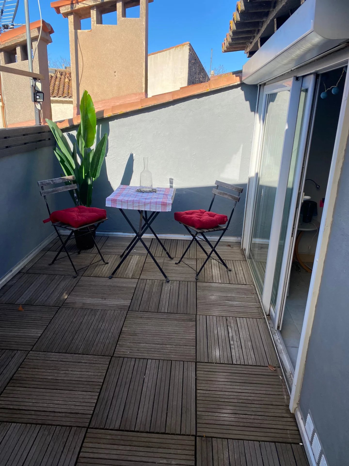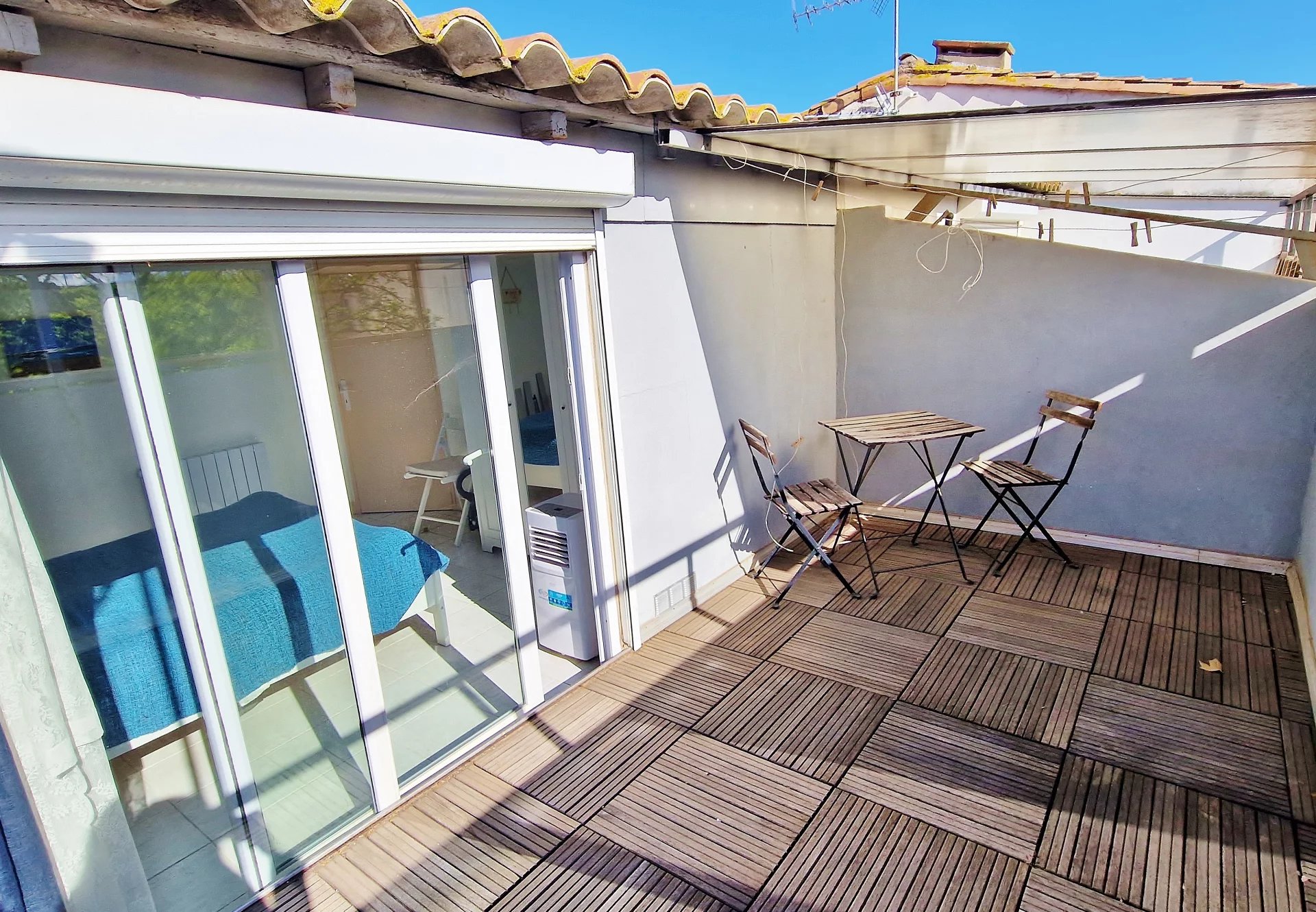Ett första sovrum finns på detta plan. På övervåningen hittar du ett andra sovrum med elektriskt fönsterjalusi och direkt tillgång till en härlig terrass i söderläge. Ett badrum med toalett och takfönster kompletterar övervåningen.