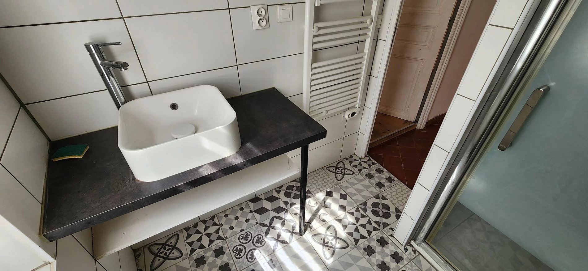 Belägen på andra våningen i en byggnad mitt i stadens hjärta, charmar denna duplexlägenhet med sin karaktär och generösa boyta. Full av personlighet med vackert traditionellt tegelgolv (tomette).